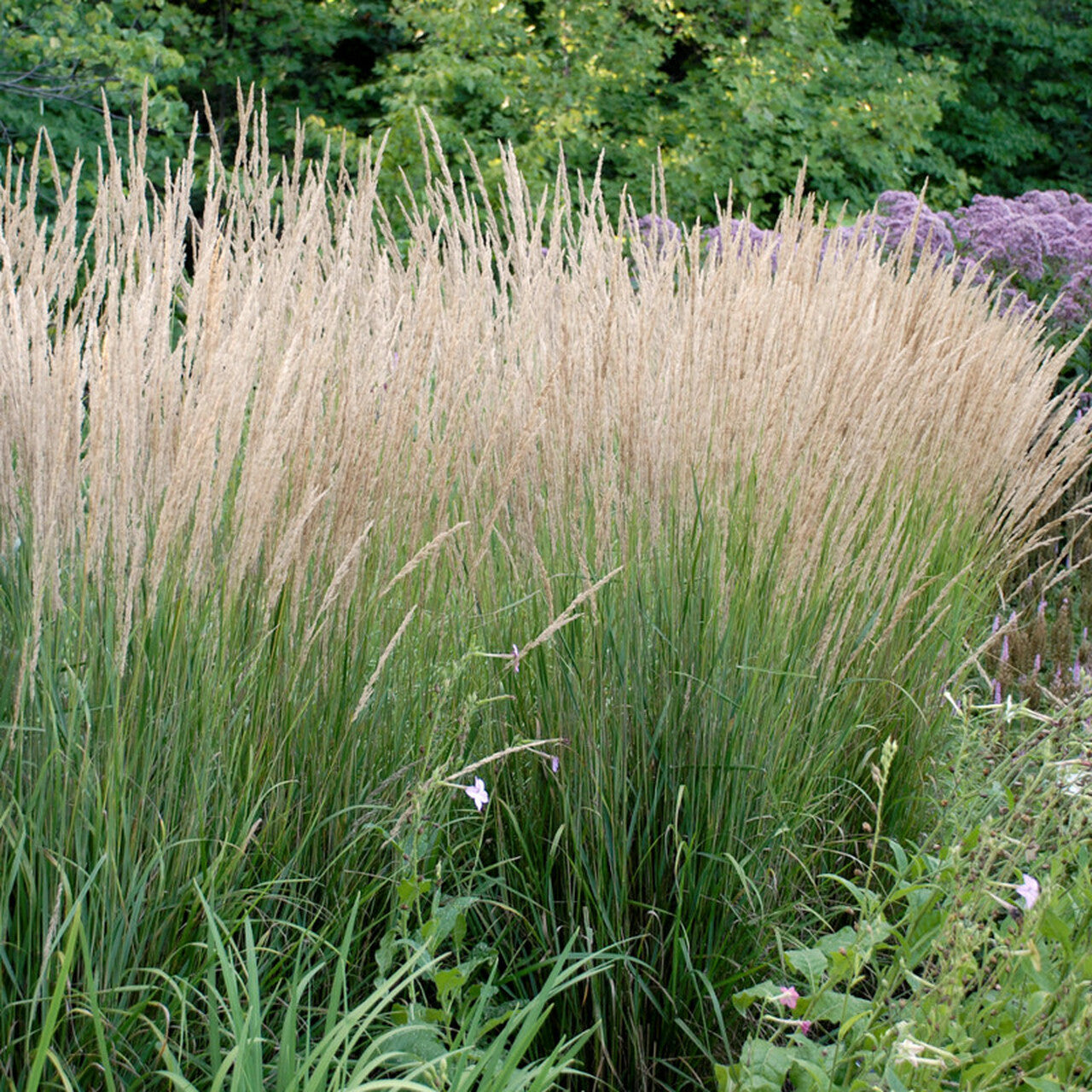 'Karl Foerster' is a cool season grass with an upright growth habit that thrives in wet clay soil and sunny locations. Reddish-brown to golden panicles appear from summer through fall, providing extended seasonal interest. The foliage grows 3 to 4 feet tall and 2 to 3 feet wide, while the blooms can reach up to 6 feet tall, creating dramatic vertical accents in the landscape. This reliable performer is one of the most popular ornamental grasses for good reason.